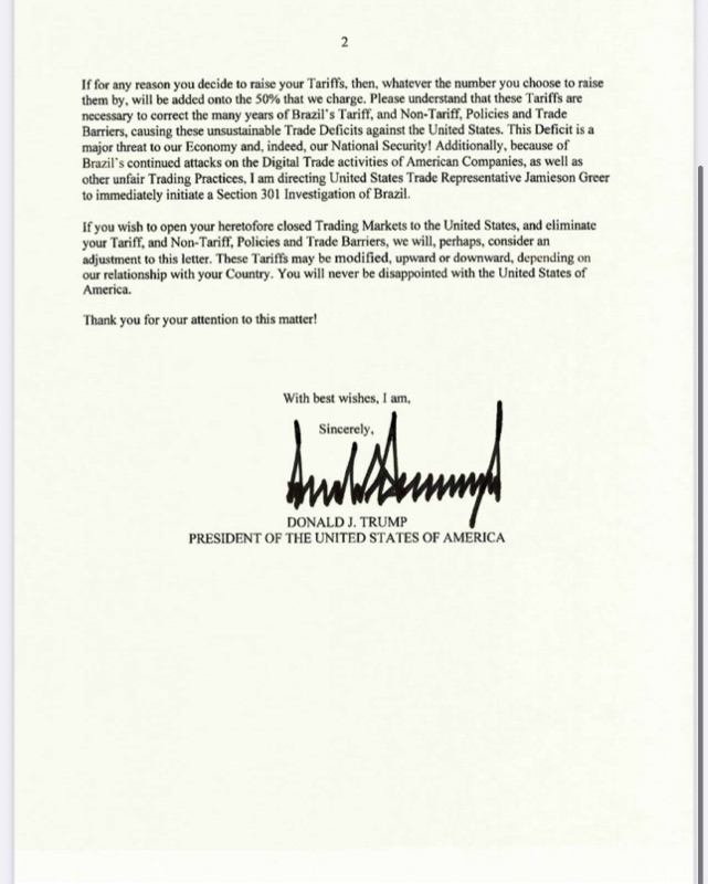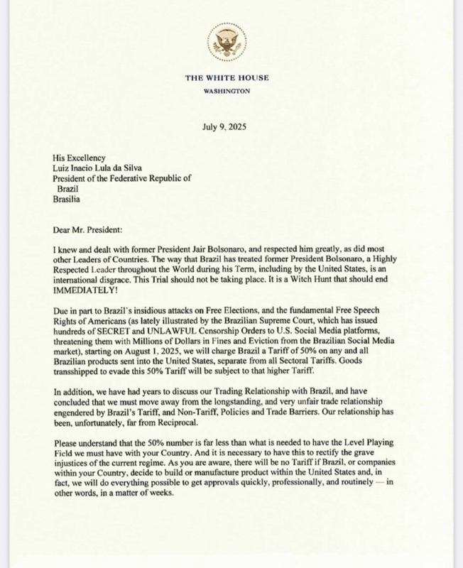 (Donald J. Trump, carta oficial — julho de 2025)