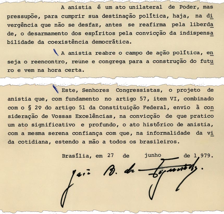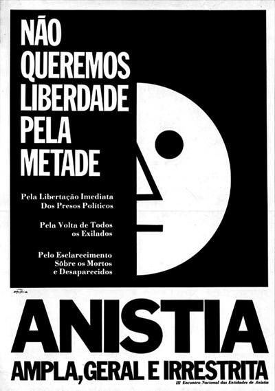 - 1979: crimes políticos e conexos; perdão amplo para militantes e militares; passo rumo à abertura democrática.