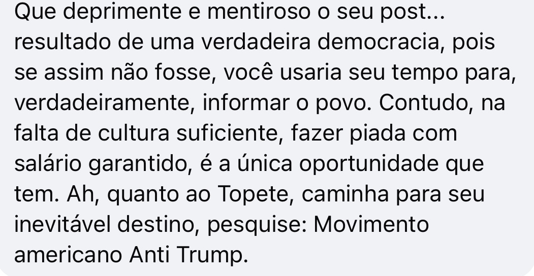 Portanto, deixo aqui um convite — ou melhor, uma provocação: da próxima vez que você se sentir tentado a desqualificar quem pensa diferente, pergunte a si mesmo se está defendendo a democracia ou apenas o seu reflexo no espelho. A resposta, garanto, pode ser mais incômoda do que qualquer texto meu.