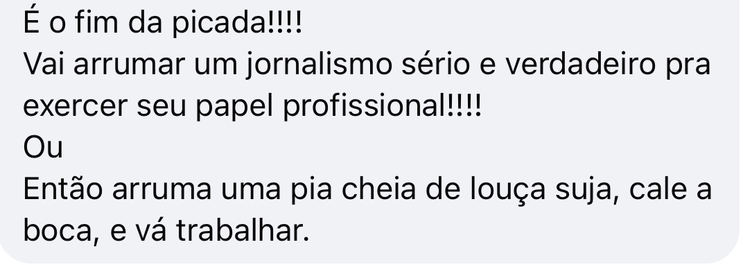 Viu aí né?! Não importa o argumento, não importa a trajetória — quase trinta anos de jornalismo pesam menos do que um único rótulo atirado na sua testa. É como se a democracia fosse aceita apenas quando ecoa o pensamento deles. O resto é descartado, desqualificado, expulso do debate.