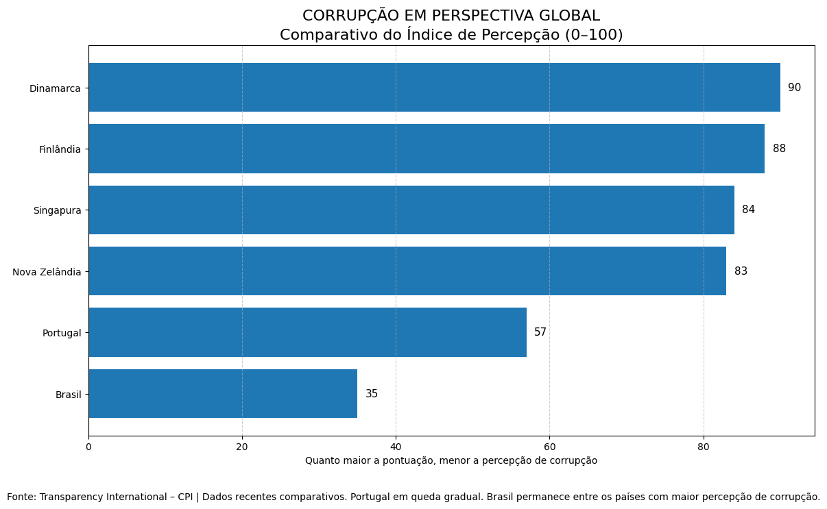 Nesse sentido, o Índice de Percepção da Corrupção, divulgado anualmente pela Transparência Internacional, funciona quase como um termômetro desse ambiente. Ele não mede apenas crimes comprovados, mede confiança, reputação institucional, sensação coletiva de integridade. E é justamente nessa dimensão simbólica que Brasil e Portugal têm mostrado trajetórias que, curiosamente, começam a se