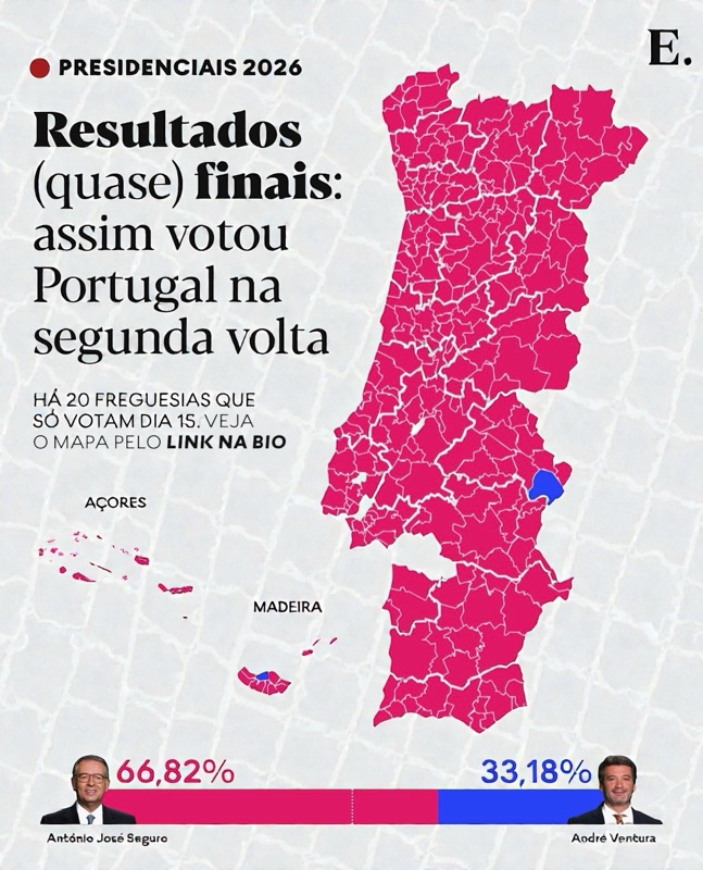 O dado talvez mais eloquente não seja quem venceu, mas quem decidiu não participar. A abstenção saltou de 38,5% no 1º turno para 49,89% no 2º. Em termos práticos, quase metade do eleitorado português preferiu o silêncio ao voto. Vale lembrar que por aqui o voto não é obrigatório.